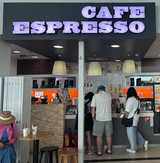 푸꾸옥 국제공항 출국장 내에 위치한 Cafe Espresso는 면세점 구역 외부, 일반 출국장 대기 구역 근처에 자리하고 있습니다. 출국 심사를 마친 후, 좌측으로 조금만 이동하면 쉽게 찾을 수 있어요. 넓은 공간은 아니지만, 환승이나 탑승 전 커피 한 잔 하기에 제격입니다.