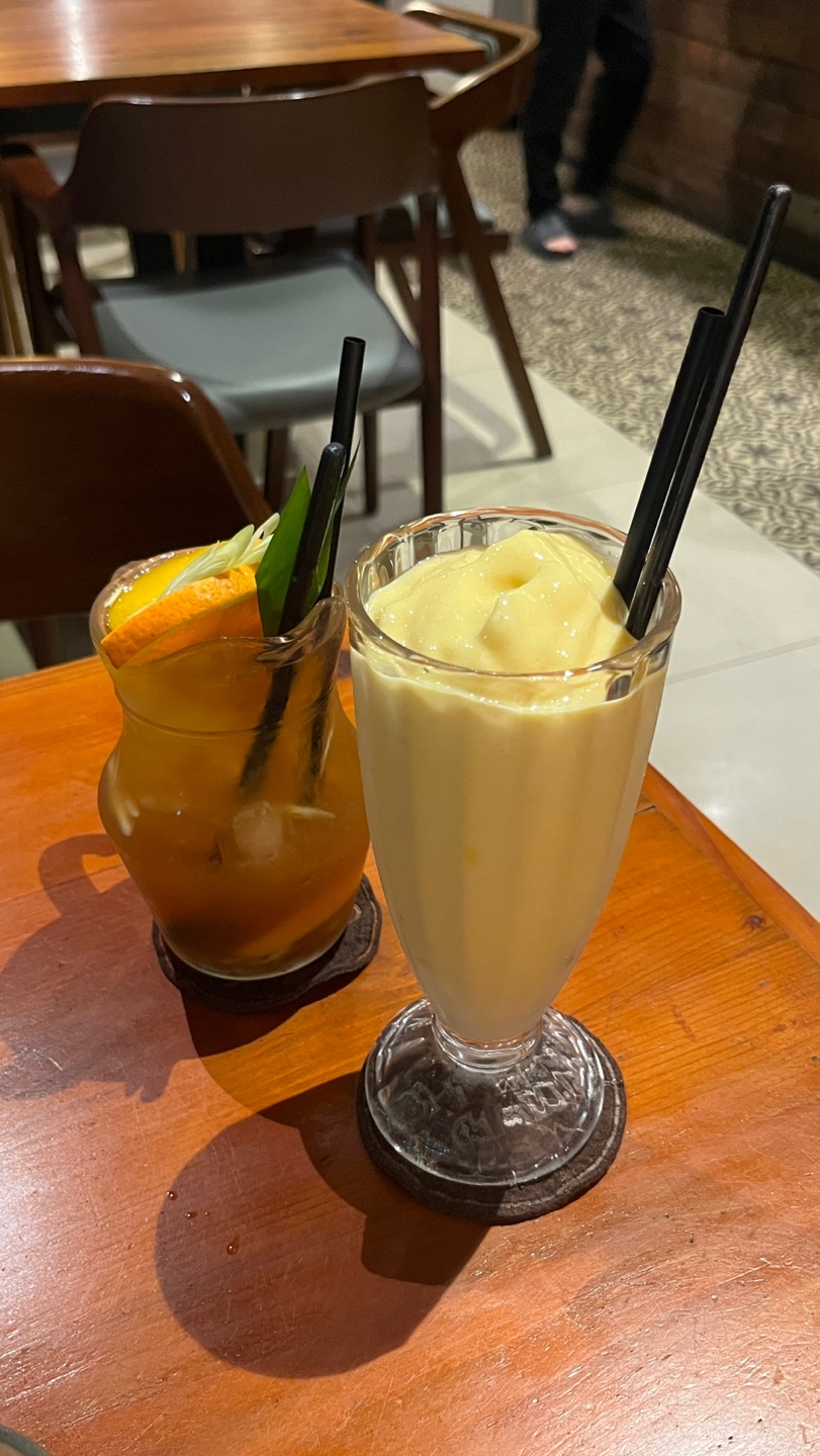 주문한 음료 – 망고스무디 & 팬션푸르츠 주스